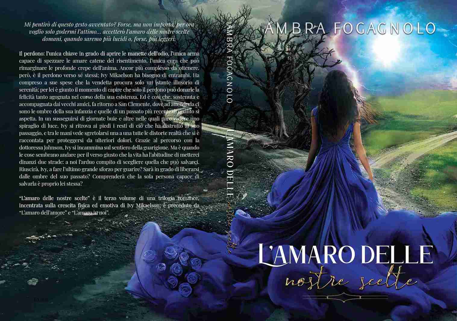 "L'amaro delle nostre scelte" è il capitolo conclusivo della trilogia di Ambra Fogagnolo, incentrata sull'amore, la crescita e la sopravvivenza emotiva. Dopo aver accompagnato il lettore attraverso le fasi dell'innamoramento adolescenziale e della passione più oscura e vendicativa, questo ultimo capitolo affonda le radici nel dolore e nella rinascita, ponendo la protagonista, Ivy Mikaelson, di fronte alla scelta più difficile di tutte: continuare a odiare sé stessa o imparare finalmente ad amarsi.Proprio in questo terzo volume, la penna di Ambra Fogagnolo raggiunge una maturità narrativa e psicologica che lascia il segno, affrontando tematiche forti come il suicidio, l'autolesionismo, la terapia psicologica, il trauma infantile e, soprattutto, la riscoperta dell'identità. La scrittura, fedele al presente storico per mantenere viva l'introspezione, rallenta il ritmo per scavare, per ascoltare, per accompagnare il lettore nella mente e nel cuore di una Ivy ormai lontana dalla ragazza conosciuta nel primo libro. A ventuno anni, segnata da una vita di perdite, bugie, vendette e illusioni, Ivy si trova a fare i conti non solo con le conseguenze delle sue scelte, ma con la versione di sé che ha costruito per sopravvivere. Il romanzo si apre con un ritorno: quello a San Clemente, città natia e custode dei fantasmi del passato. Dopo il devastante epilogo del secondo volume, Ivy torna a casa, distrutta da una vendetta che non ha portato la pace sperata. Qui ritrova Josh, il vecchio amico pronto a tenderle una mano, e la Dottoressa Johnson, figura chiave del suo percorso terapeutico. Ma il passato, com'è noto, non muore mai: Nathan, personaggio ambiguo e fondamentale del secondo volume, fa ritorno per tentare di rimediare. E così, nella solitudine più profonda, Ivy dovrà imparare a distinguere ciò che è stato imposto da ciò che è reale. Un alternarsi di emozioni, flashback e pensieri che rendono il romanzo una lettura coinvolgente e dolorosamente autentica. "L'amaro delle nostre scelte" è, soprattutto, un romanzo di guarigione. Il ritmo sembra quasi rallentare per lasciare spazio ai luoghi interiori della protagonista, non sufficientemente esplorati nei romanzi precedenti.