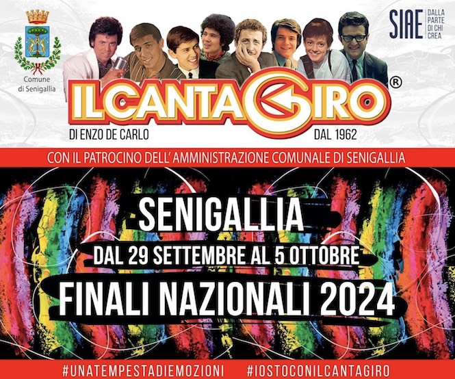Dopo le tante selezioni e le finali regionali da Nord a Sud Italia, c'è tanta attesa per le finali nazionali del Cantagiro 2024 che si concluderanno il 5 ottobre con la finalissima presso il Teatro La Fenice di Senigallia, in via Cesare Battisti 30.Alla conduzione troviamo Sabrina Marinangeli e Marco Zingaretti, mentre come Presidente di Giuria sarà il M° Adriano Pennino. Nella finalissima come special guest troveremo Fiordaliso. La regia sarà a cura di Giulia Carla De Carlo.